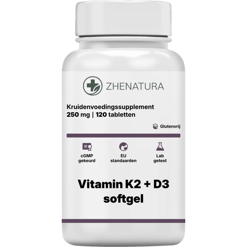 Vitamine D3 en vitamine K2, geleverd in een goed opneembare softgel, werken synergetisch om het calciummetabolisme van het lichaam te optimaliseren en een diepe structurele integriteit te behouden. Vitamine D3 fungeert als de kritieke “poortwachter” die de efficiënte opname van calcium en fosfor vanuit de darmen in de bloedbaan bevordert, en zo bijdraagt aan normale calciumgehalten in het bloed en de normale werking van het immuunsysteem. Zodra calcium zich echter in het bloed bevindt, treedt vitamine K2 op als de essentiële “verkeersregelaar”. Het activeert specifieke eiwitten (osteocalcine en Matrix Gla Proteïne) die dit circulerende calcium actief wegleiden van zachte weefsels en bloedvaten, en het exact in de botmatrix sturen waar het het meest nodig is. Door ervoor te zorgen dat calcium wordt gebruikt voor het opbouwen van botdichtheid in plaats van het verkalken van de slagaders, creëert dit vetoplosbare vitaminecomplex optimale omstandigheden voor het behoud van een robuuste botstructuur, cardiovasculaire doorstroming en spierfunctie—synergetisch werkend om het algehele welzijn en de diepe constitutionele vitaliteit te handhaven.