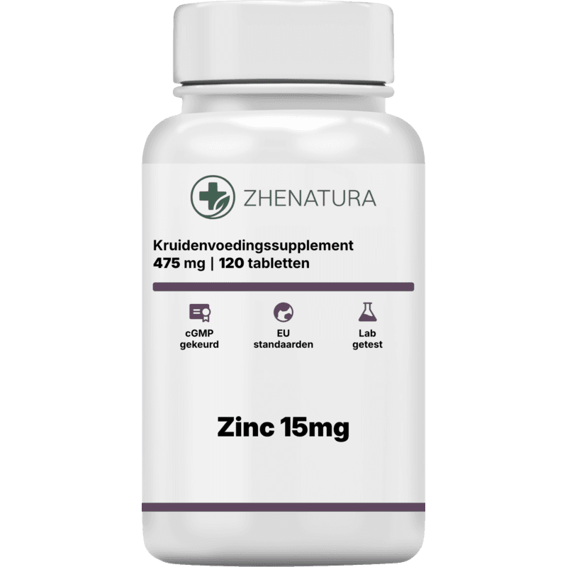 Zink is een sterk geconcentreerd, essentieel spoorelement dat dient als een structurele en katalytische hoeksteen voor meer dan 300 enzymatische reacties in het hele lichaam. Bij een dagelijkse inname van 15 mg speelt het een kritieke rol bij de normale synthese van DNA en eiwitten, wat zorgt voor de voortdurende vernieuwing van sneldelende cellen in huid, haar, nagels en het immuunsysteem. Zink draagt direct bij aan de normale werking van het immuunsysteem, de bescherming van cellen tegen oxidatieve stress en de instandhouding van normale testosterongehalten in het bloed, terwijl het tegelijkertijd een normale cognitieve functie en het gezichtsvermogen ondersteunt. Door dit fundamentele mineraal in een goed opneembare vorm te leveren, creëert zink optimale omstandigheden voor cellulair herstel, hormonale balans en structurele integriteit—synergetisch werkend om het algehele welzijn en de constitutionele vitaliteit op het diepste cellulaire niveau te handhaven.